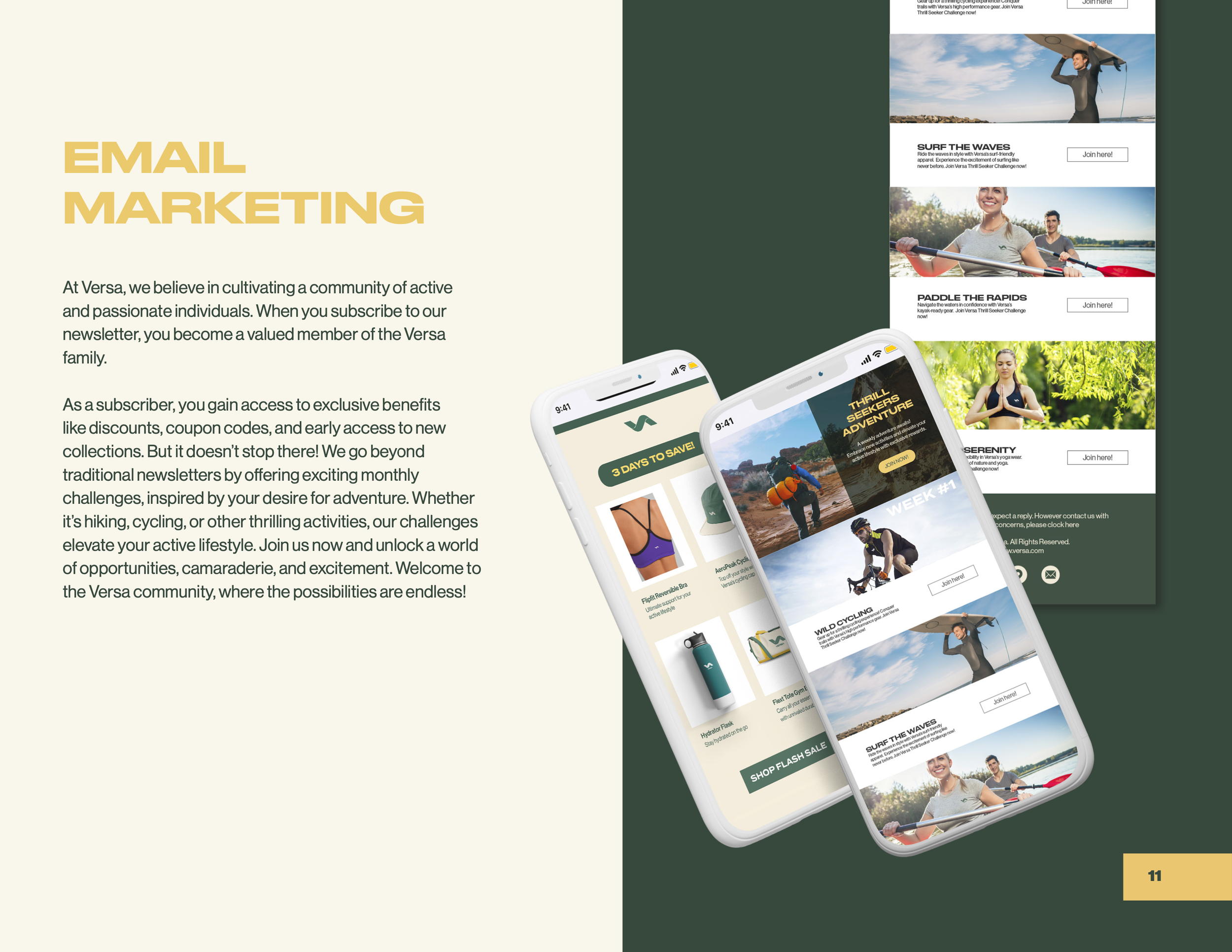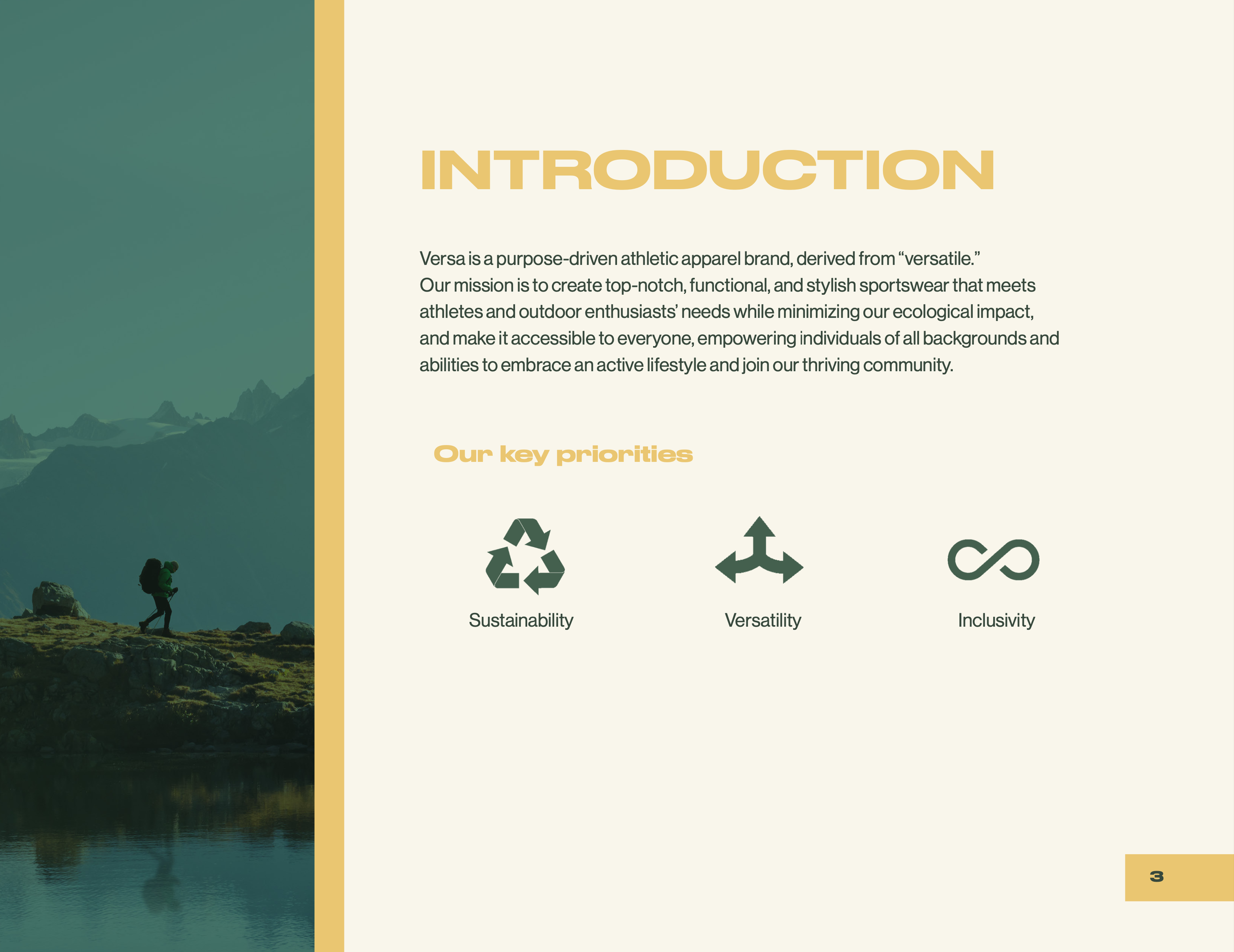 As a brand strategist, I conceptualized the name "Versa", designed the initial logo, and ensured coherence throughout our brand book. Meanwhile, my colleagues focused on designing the brand book and developing marketing materials.